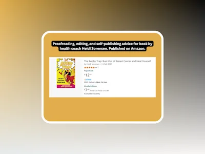 Holistic health coach Heidi Sorensen wrote her first book about her journey to overcome breast cancer naturally. This book was written to inspire other women, but to also assist Heidi in connect with new clients seeking her health coaching services. I proofread and edited the manuscript to ensure it was polished, error-free, and ready for publication. Heidi left a five-star review of my services, stating: “Marc is a great guy, very personable and helpful and an excellent editor. He caught all the little things that I missed and wouldn’t have noticed (and I’m a screenwriter!) He was fast and efficient and not only helped with the editing but also with the structure of my book, which is so important. I truly can’t thank you enough Marc! I will definitely come back when my next book is done!” * Review posted on my Fiverr profile on Nov 8th, 2022.