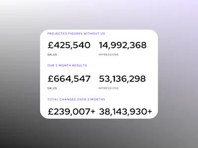 Below is a three month job done with a fitness client in the UK. They were actually doing pretty well but had hit a bit of a sticking point and needed help growing exposure and sales in a crowded market. We focused on a full funnel approach to their marketing to target a wider audience and increase their client base which led to an overall increase of £200k+ sales within three months during a period where most sellers saw a drop of 50% in their sales due to the gyms reopening.