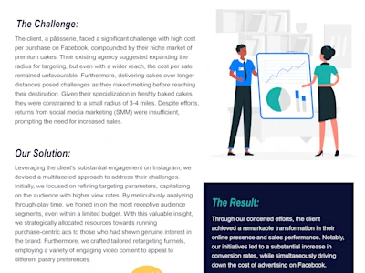 Helped a Patisserie in increasing online sales and skyrocket the ROAS (Return On Ad Spend) to 12X through META ads.